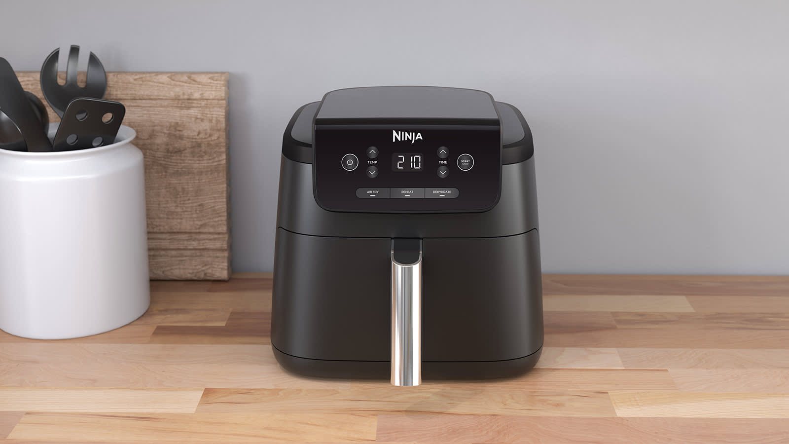 - Three cooking functions: Air Fry, Dehydrate, Reheat