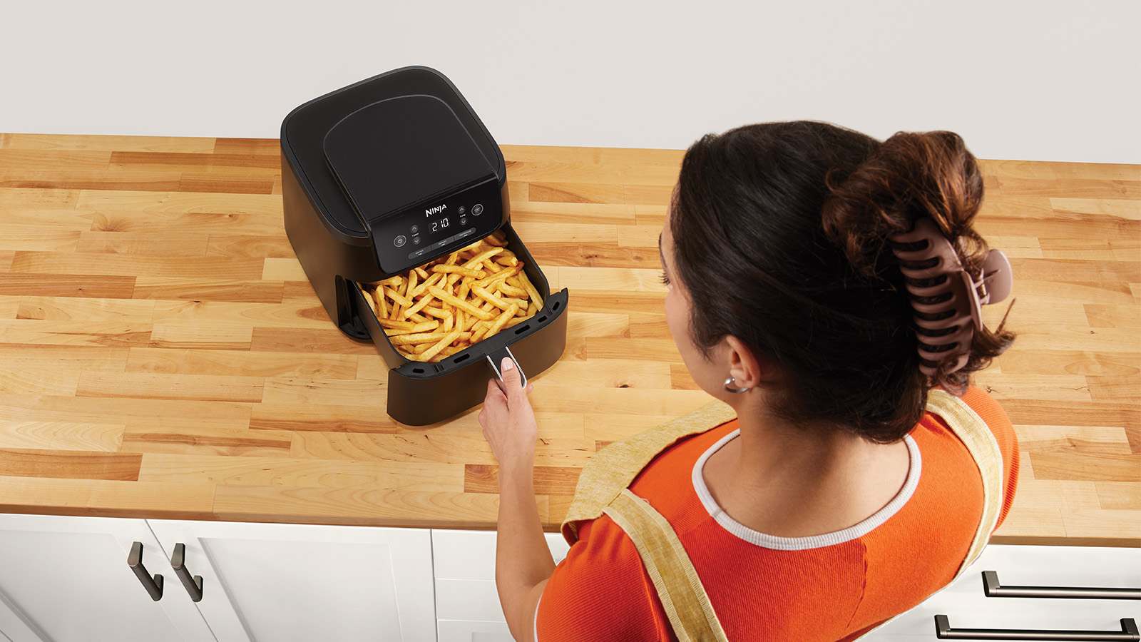 Crispy results, every time. The Ninja Air Fryer quickly cooks your favourite foods using little to no oil, for healthier frying – up to 75% less fat than traditional frying methods*.