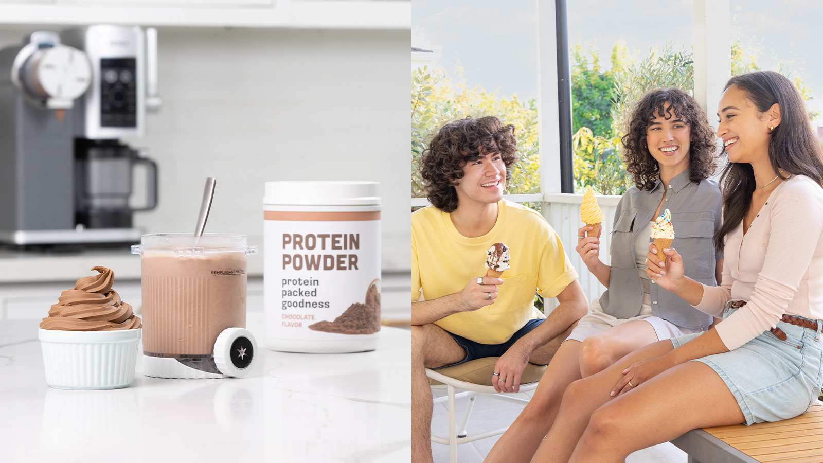 - CreamiFit: Use protein shakes or protein mixes to create a delicious frozen treat. Choose from two versions – Soft Serve or Scoop. Add matcha powder to create a Matcha Protein Soft Serve.