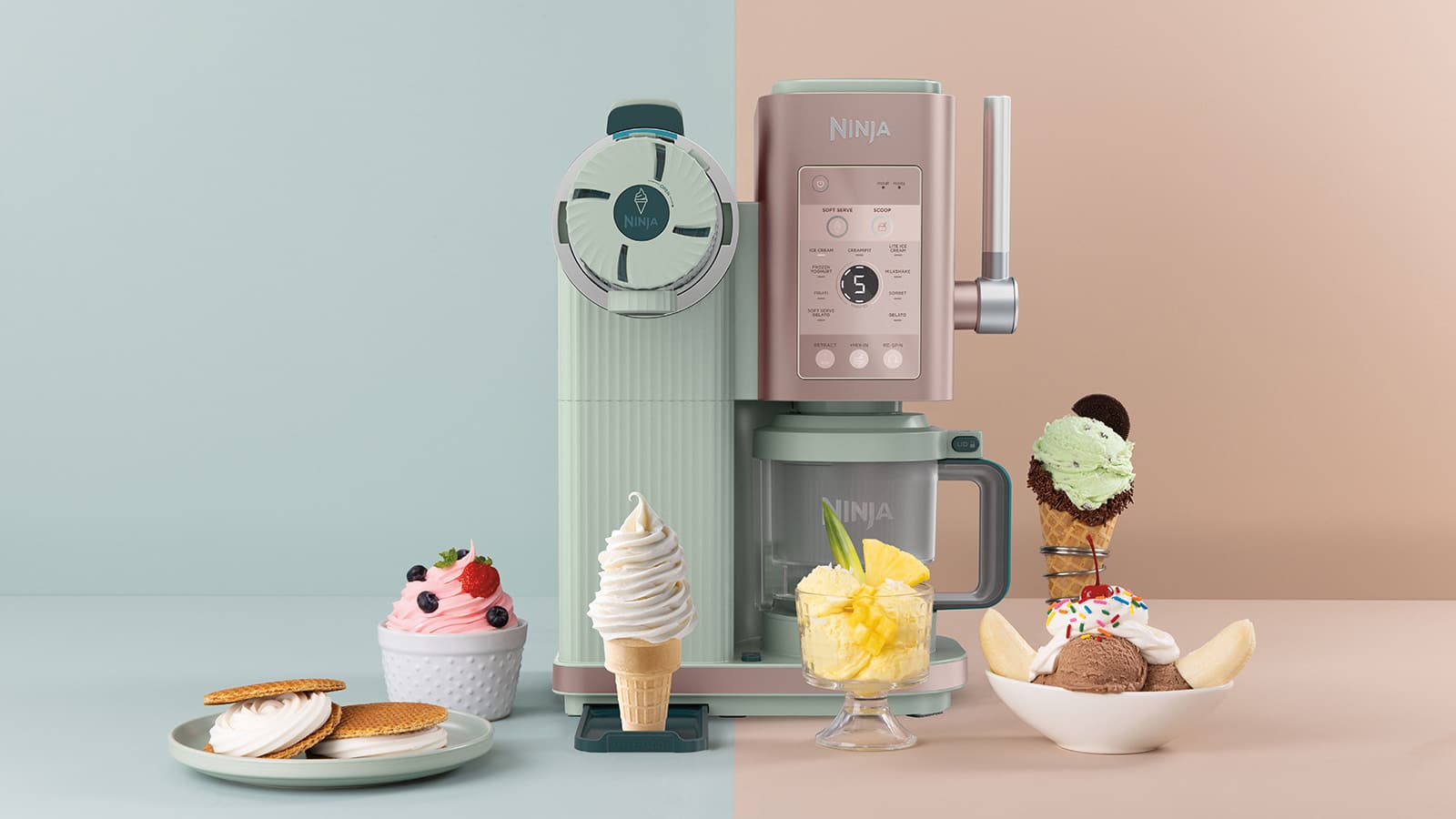 - Ice Cream: This soft serve mode is a lighter, airier alternative to traditional scoopable ice cream that’s soft enough to swirl into a spiral shape. Go classic with vanilla or try nutty pistachio.