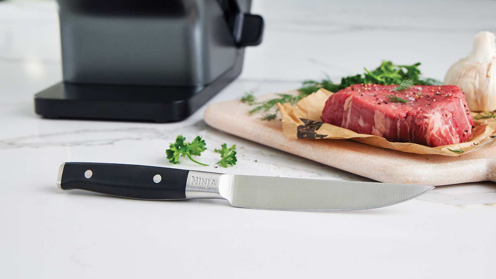 This steak knife set is designed for use with the Ninja Foodi StaySharp Knife System delivering incredible performance and professional sharpening, time after time.