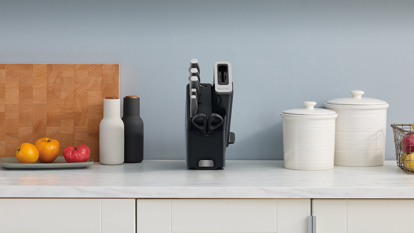 Meet the Ninja StaySharp Stainless Knife System. Developed for budding cooks to experienced chefs and everyone in between, it offers professional quality, made for the home kitchen. Now in a sleek charcoal knife block, this premium knife set and block will complement any modern kitchen.
