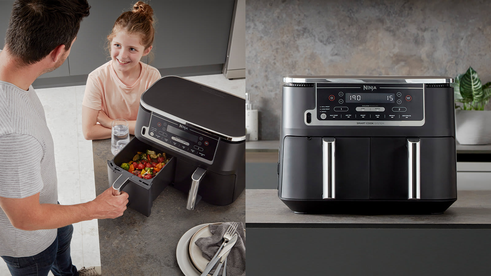 Want to Bake in one drawer and Air Fry in the other? No problem! Different cooking times for roast chicken and crispy fries? Both zones finish cooking at the same time, so you can enjoy freshly-cooked mains and sides together – no need to use different appliances or let your side go cold while your main finishes cooking!